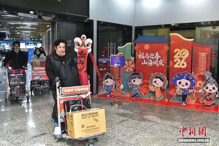 2月2日,福州港黃岐客運(yùn)站內(nèi),新年裝飾隨處可見(jiàn)。圖為旅客辦理相關(guān)手續(xù)后走出客運(yùn)站。 中新社記者 張斌 攝