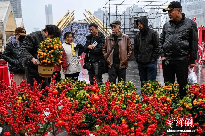 2月3日,民眾在2026貴陽貴安新春年貨節(jié)上選購金桔盆栽。中新社記者 瞿宏倫 攝