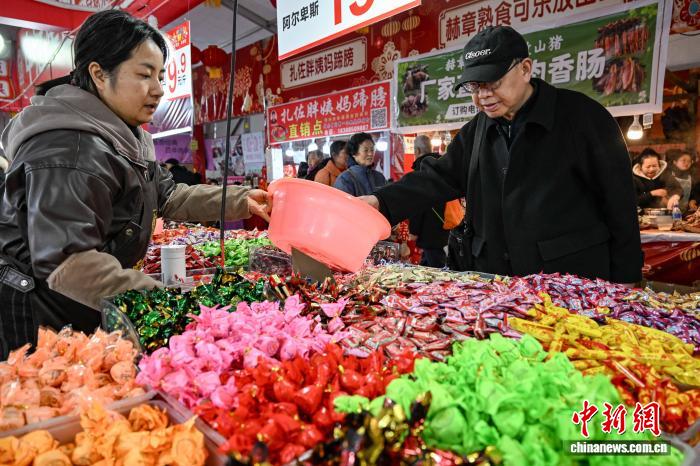2月3日,市民在2026貴陽貴安新春年貨節(jié)上選購糖果。中新社記者 瞿宏倫 攝