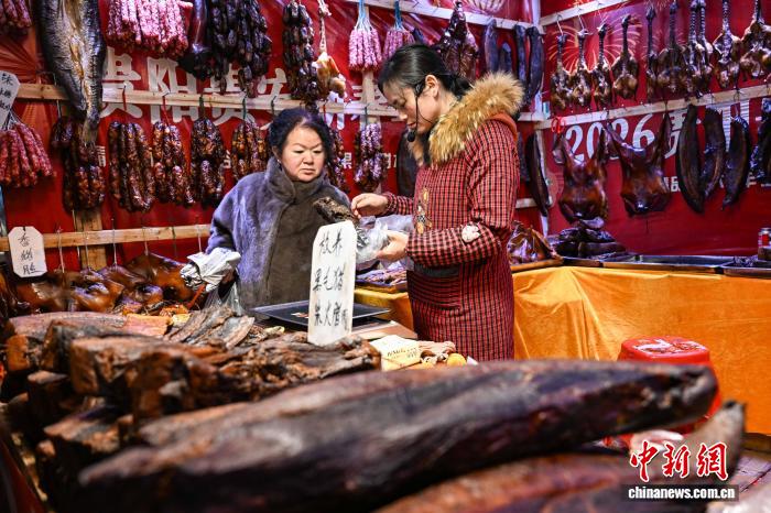 2月3日,市民在2026貴陽貴安新春年貨節(jié)上選購臘肉。中新社記者 瞿宏倫 攝