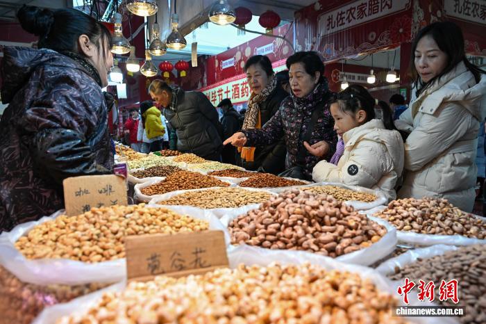 2月3日,民眾在2026貴陽貴安新春年貨節(jié)上選購堅果。中新社記者 瞿宏倫 攝