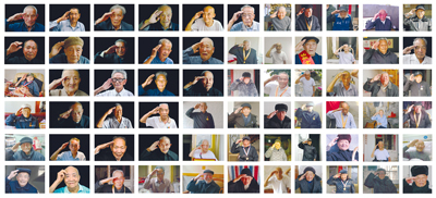 抗戰(zhàn)老兵敬禮照片墻(部分)。