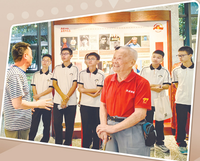 2025年10月7日,百歲抗戰(zhàn)老兵林旭光來到甌海區(qū)檔案館,用普通話講述抗戰(zhàn)經(jīng)歷。溫州外國語學(xué)校八年級學(xué)生周嘉誠現(xiàn)場聆聽后興奮地說:“抗戰(zhàn)老兵爺爺?shù)目谷展适拢寶v史從書本上走了出來,讓我們更加懂得今天和平生活的來之不易。我一定銘記抗戰(zhàn)歷史,好好學(xué)習(xí),做個有擔(dān)當?shù)男聲r代好少年?!?/p>