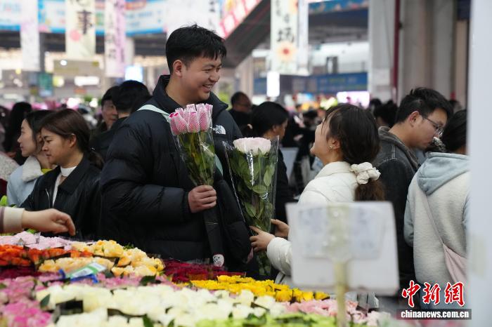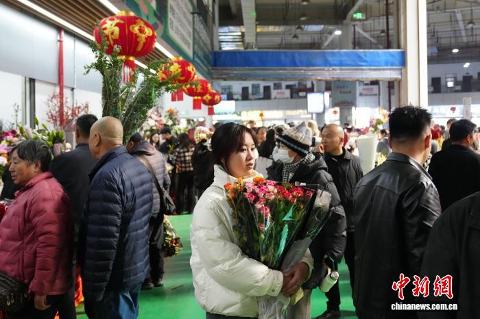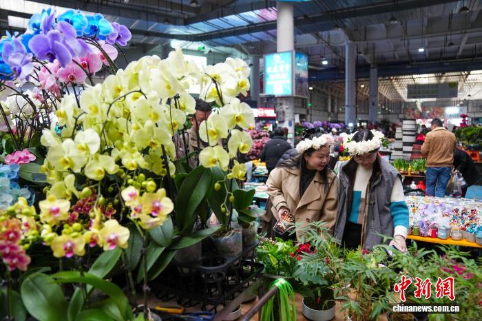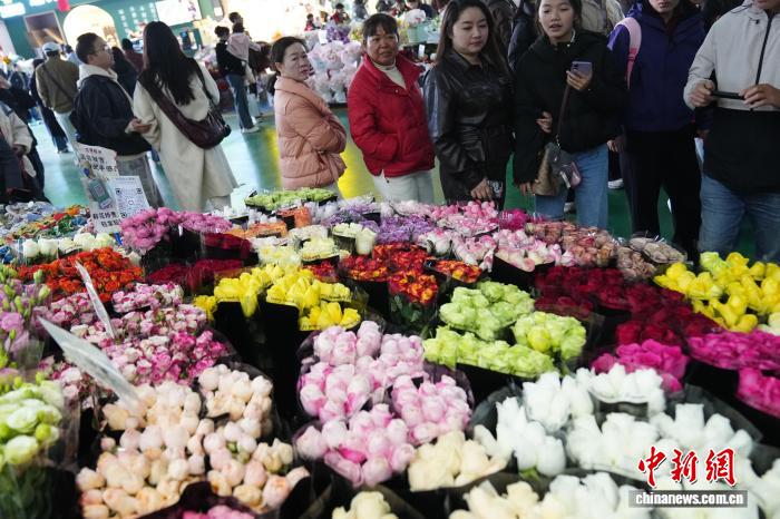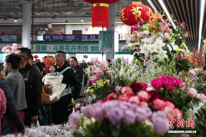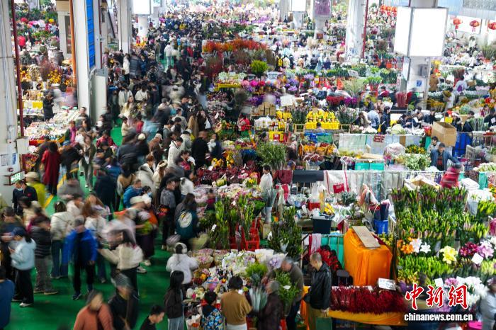 2月8日,春節(jié)臨近,周末的昆明斗南花卉市場熱鬧非凡,眾多市民和游客到此選購鮮花,感受專屬昆明的花式浪漫。中新社記者 劉冉陽 攝