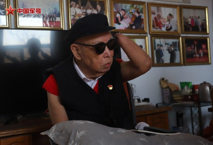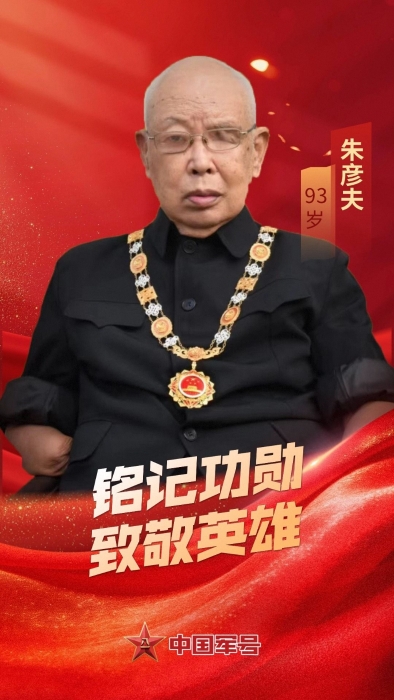 朱彥夫佩戴“共和國勛章”留影(朱向華提供)。