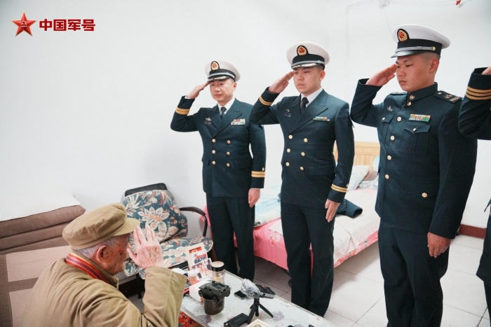 春節(jié)前夕,海軍某部官兵代表來到山東鄒城,探望慰問老兵房來廷。房來廷12歲參加抗日兒童團,先后參加了抗日戰(zhàn)爭、解放戰(zhàn)爭、抗美援朝戰(zhàn)爭等眾多戰(zhàn)役戰(zhàn)斗,用青春與熱血書寫了一名革命軍人的赤膽忠誠。新春的腳步漸近,帶著全連官兵的惦念與敬意,官兵代表捧著精心準(zhǔn)備的慰問品、決心書,走進房來廷家中,讓英雄精神在冬日里傳遞溫暖,讓紅色血脈在交流中賡續(xù)傳承。