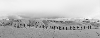 圖為新疆軍區(qū)某部官兵在海拔4000多米的雪域高原踏雪巡邏。劉帥 攝