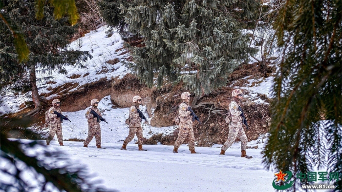 官兵在巡邏途中進行戰(zhàn)術(shù)訓練。張旭 攝