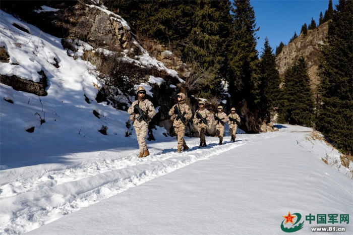 官兵踏上風雪巡邏路。鄭亞奇 攝