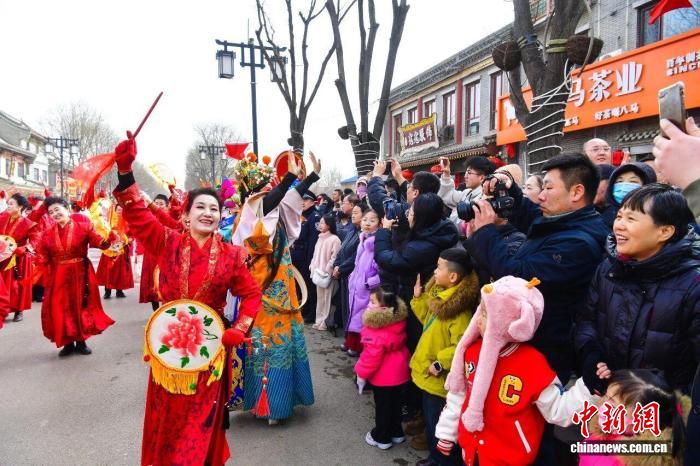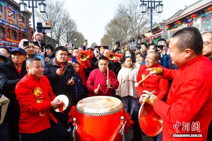春節(jié)假期,山西朔州,一場(chǎng)在街巷間舉行的非遺展演讓游客感受濃濃年味。 李小龍 攝