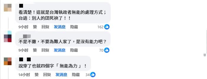 相較于大陸的積極作為,臺當(dāng)局不僅抹黑大陸協(xié)助臺胞撤離的行為,還堅拒撤僑,稱“僑胞認(rèn)為留在當(dāng)?shù)匕踩保绱吮響B(tài)讓臺灣社會的批評聲浪不斷發(fā)酵。臺灣網(wǎng)友表示,“不是不撤,是沒能力撤!”、“以后出境還是帶上臺胞證才安心!”