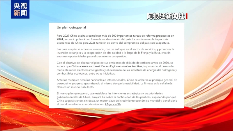 圍繞中國政府工作報告和“十五五”規(guī)劃,阿根廷新聞社報道稱,中國將通過更有力的政策支持和改革舉措,繼續(xù)推動高質量發(fā)展、穩(wěn)定增長和社會進步。