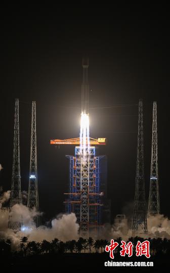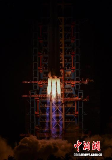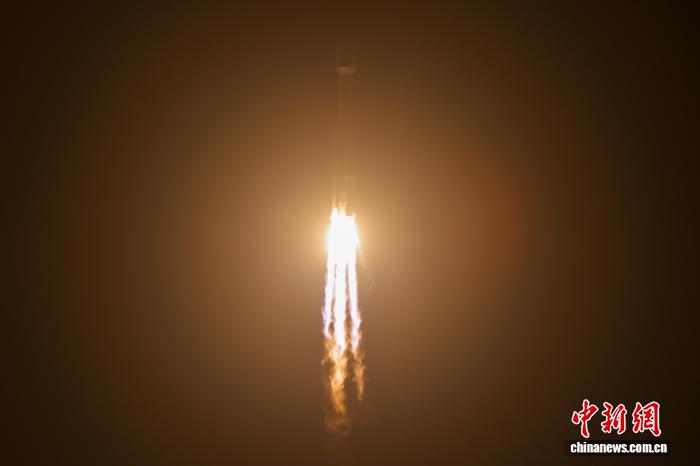 圖為長征八號甲運載火箭尾焰。中新社記者 駱云飛 攝