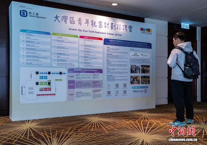 圖為一位求職青年在入場(chǎng)展板處查看招聘會(huì)信息。中新網(wǎng)記者 侯宇 攝