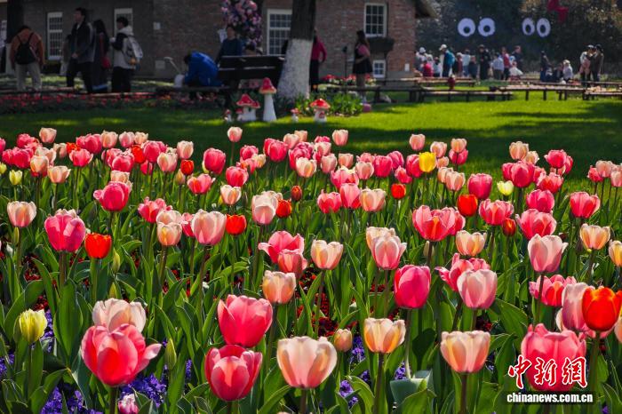 3月14日,江蘇南京,綠博園內(nèi)種植的郁金香迎來盛放期,絢麗繽紛,明艷動人。中新社記者 泱波 攝