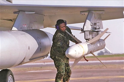 土耳其地勤人員為戰(zhàn)斗機掛載反輻射導(dǎo)彈。