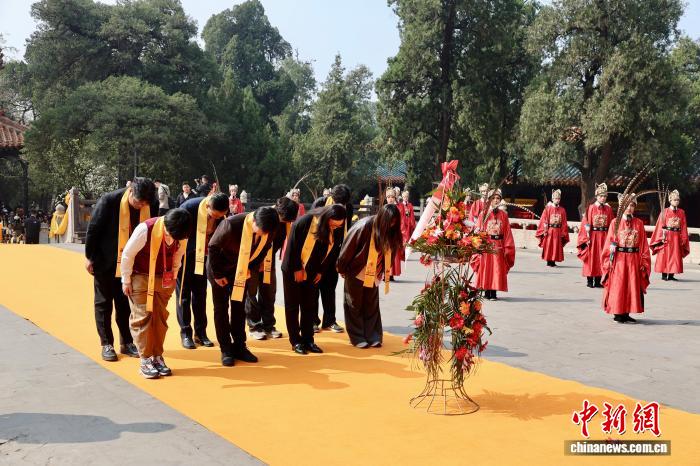 當天,2026海峽兩岸孔子文化春會兩岸青年同祭孔活動在曲阜孔廟舉行。擊鼓鳴鐘,“啟戶”聲起,孔廟大成門緩緩打開,兩岸參祭嘉賓正衣冠、拾肅容,沿孔廟古柏蒼蒼的道路,依次步入大成殿祭拜至圣先師孔子。