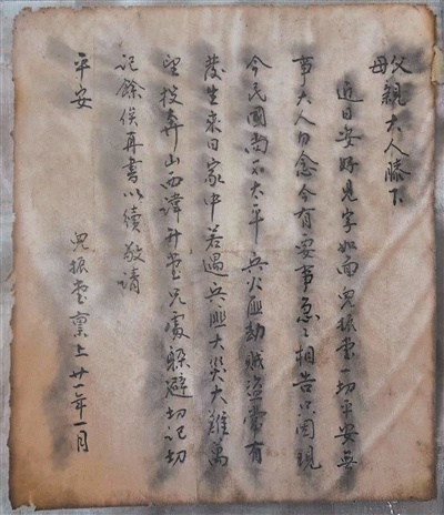 董振堂寫給家人的信。作者供圖